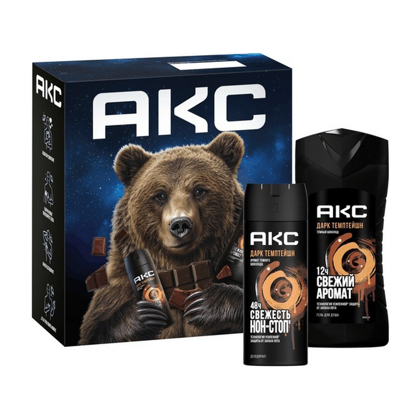 Подарочный набор для мужчин АКС Эпик Фреш представляет собой яркую коллекцию средств для ежедневного ухода за волосами, кожей лица и телом у мужчин. В состав набора входят гель для душа, средство для умывания лица и шампунь для волос 3в1, дезодорант мужской твердый от запаха пота подмышек – незаменимые средства для тех, кто ценит высокий уровень для себя и заботится о комфорте для всех. Средства упаковываются в подарочную коробку, благодаря которой этот комплект заменяется подарком. Гель для душа и умывания, шампунь для мужских волос 3в1 разработан на основе технологии усиленной* защиты от запаха пота. Содержит в своем составе пребиотики растительного происхождения и увлажняющие компоненты, которые поддерживают pH-баланс кожи и бережно ухаживают за ней. Парфюмированный гель для душа и шампунь для волос эффективно очищает кожу головы, лица и тела, придавая ей ощущение свежести в течение всего дня. Парфюмированный мужской стик-дезодорант обеспечивает надежную защиту от запаха пота на протяжении 48