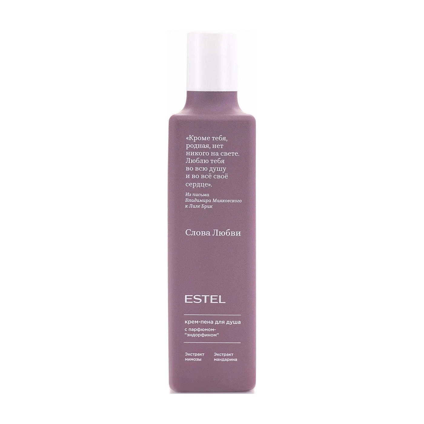 «Слова любви» - ухаживающая коллекция для волос и кожи, вдохновлённая письмами литературных классиков к их возлюбленным. Крем-пена для душа с экстрактами мимозы и мандарина освежает, успокаивает и тонизирует кожу, повышает природную эластичность и шелковистость. Деликатно очищает, оставляя кожу увлажнённой и шелковистой; расслабляет напряженные мышцы и заряжает энергией; обеспечивает тонус и эластичность.