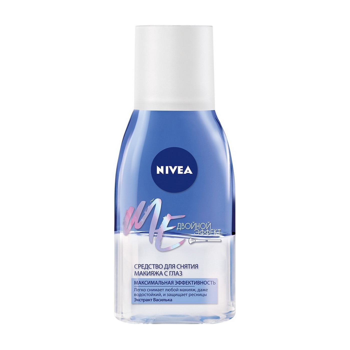 Средство для удаления макияжа с глаз двойной эффект от Nivea эффективно удаляет даже водостойкий макияж, и, благодаря двухфазной формуле с экстрактом василька, защищает от повреждения ресницы. Оно идеально и бережно очищает кожу вокруг глаз и не оставляет ощущения жирности и липкости. Эффективно удаляет даже экстремальную водостойкую тушь для ресниц и стойкий макияж. Средство для удаления макияжа с глаз двойной эффект от Nivea подходит даже для чувствительной кожи и не щиплет глаза при использовании. Подходит при использовании контактных линз.