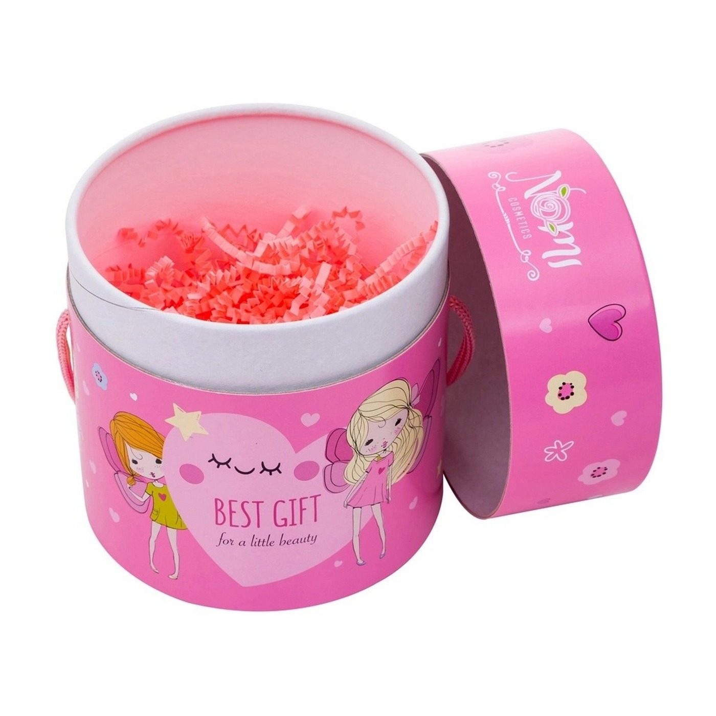 Самая большая мечта для девочки - своя, настоящая косметика, как у мамы. Она учит ухаживать за собой, развивает творческие способности, приучает к аккуратности и самостоятельности.Детская декоративная косметика для девочек NOMI в ярком нарядном тубусе с ручкой. Размер 14х12 см. Розовый наполнитель защищает косметику при транспортировке и создает праздничное настроение.В тубусе:- Лак розовый, 7мл;- Жидкость для снятия лака с витамином Е и нежным цветочным ароматом, 30мл;- Бальзам-гель с маслами какао,оливы, кокоса и ароматом ванили, 10г;- Тени для век на кремовой основе, 3г;- Зеркальце с подставкой, диаметр 7см;- Яркая косметическая сумочка из экокожи на кнопке, 11,5х3х9 см;- Заколочки для волос с блесткамим, 2 шт.