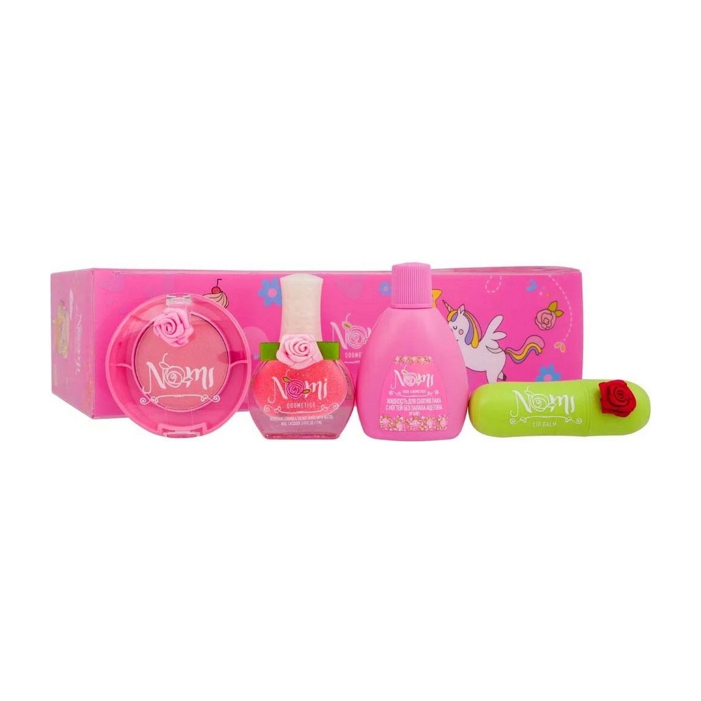 Nomi Набор Beuty Box GBL02 предназначен для создания красивого макияжа необходим маленькой моднице. Всё должно быть, как у взрослой леди: губные помады, лаки для ногтей, блески для губ, тени для век, румяна. Осталось применить творческий подход и создать свой неповторимый образ.Вся косметика гипоаллергенна и безопасна для детей, легко смывается с кожи водой.В комплекте:Лак № 9Бальзам для губ КлубникаРумяна Волшебная жемчужинаЖидкость для снятия лака.